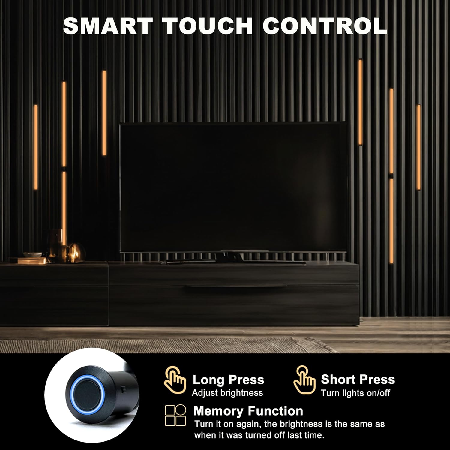 Cefrank LED Slat Wall Lights, 6-Pack 16 inch Dimmable Cozy Strip Lights with Touch Switch Lumisense Matte Black Finish, 3000K Warm White