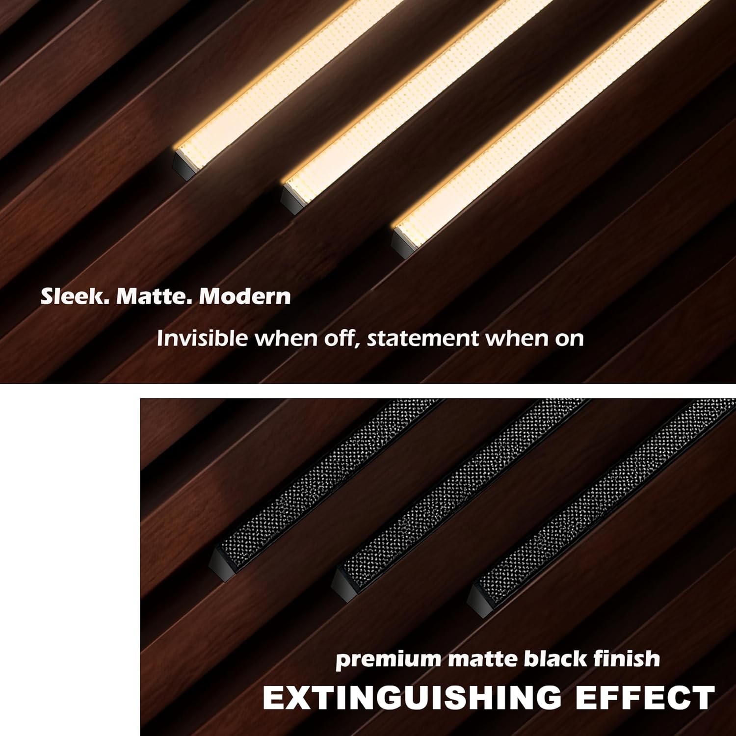 ▶ Smart LED Light Bar with Matte Black Finish – Features a premium matte black finish that resists fingerprints and blends seamlessly into your furniture, keeping the focus on the light, not the fixture.Specially designed to seamlessly integrate with oak acoustic wood panels and solid wood slat panels.